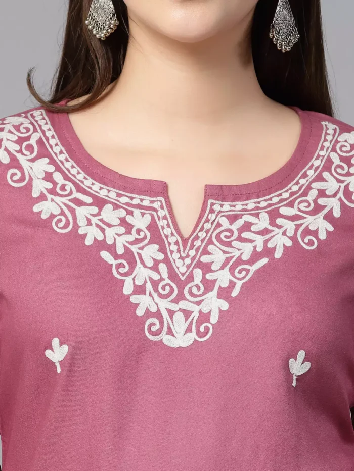 Home Short Kurtis Aiza Kashmiri Pink Short Kurti