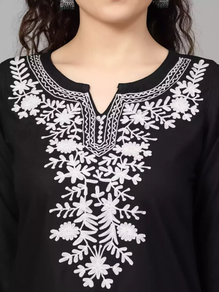 Black Kashmiri Embroidered Short Kurti