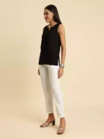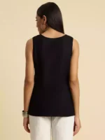 Black Self-Embroidered Sleeveless Short Kurti