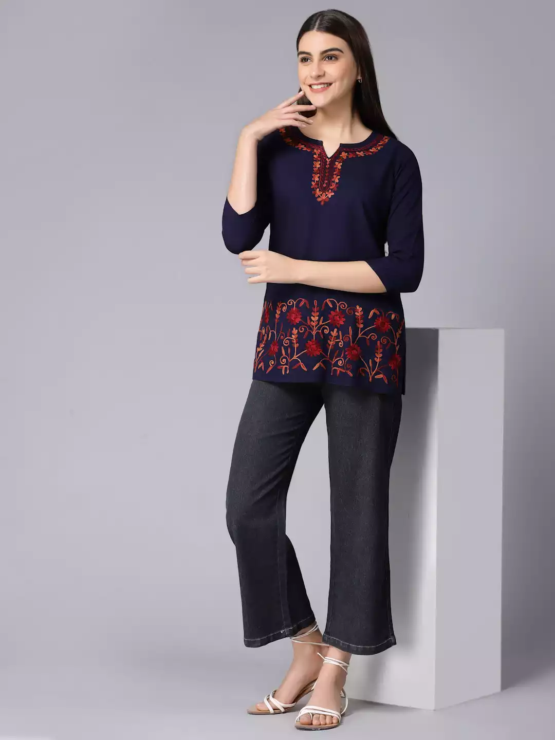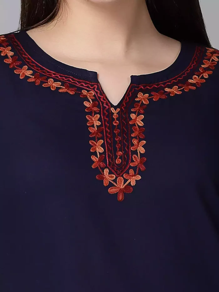 Blue Kashmiri Silk Work Short Kurti