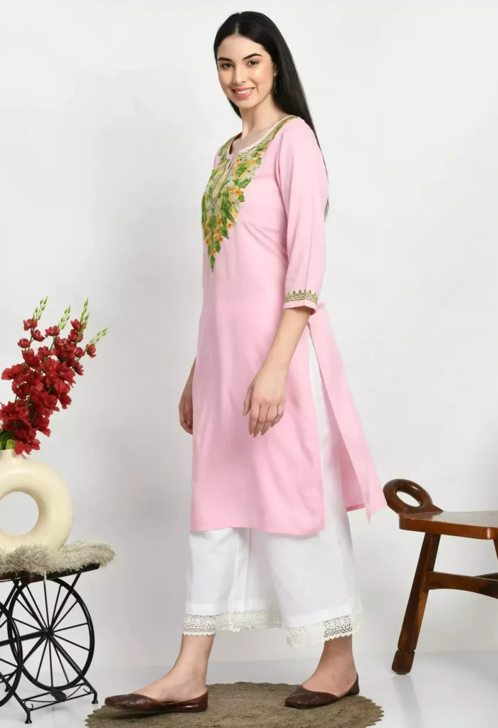 Look ethereal in this Aari work, Kurti, crafted with contours from Kashmir.