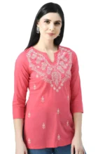 Look ethereal in this Lucknowi Chikankari Kurti, freshly crafted in the lightness and comfy feel of cotton.