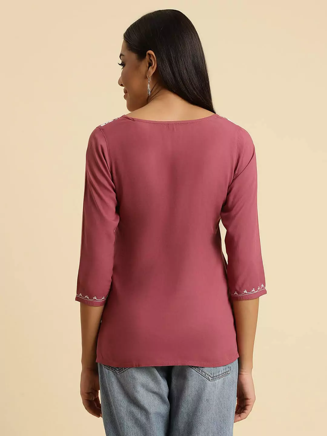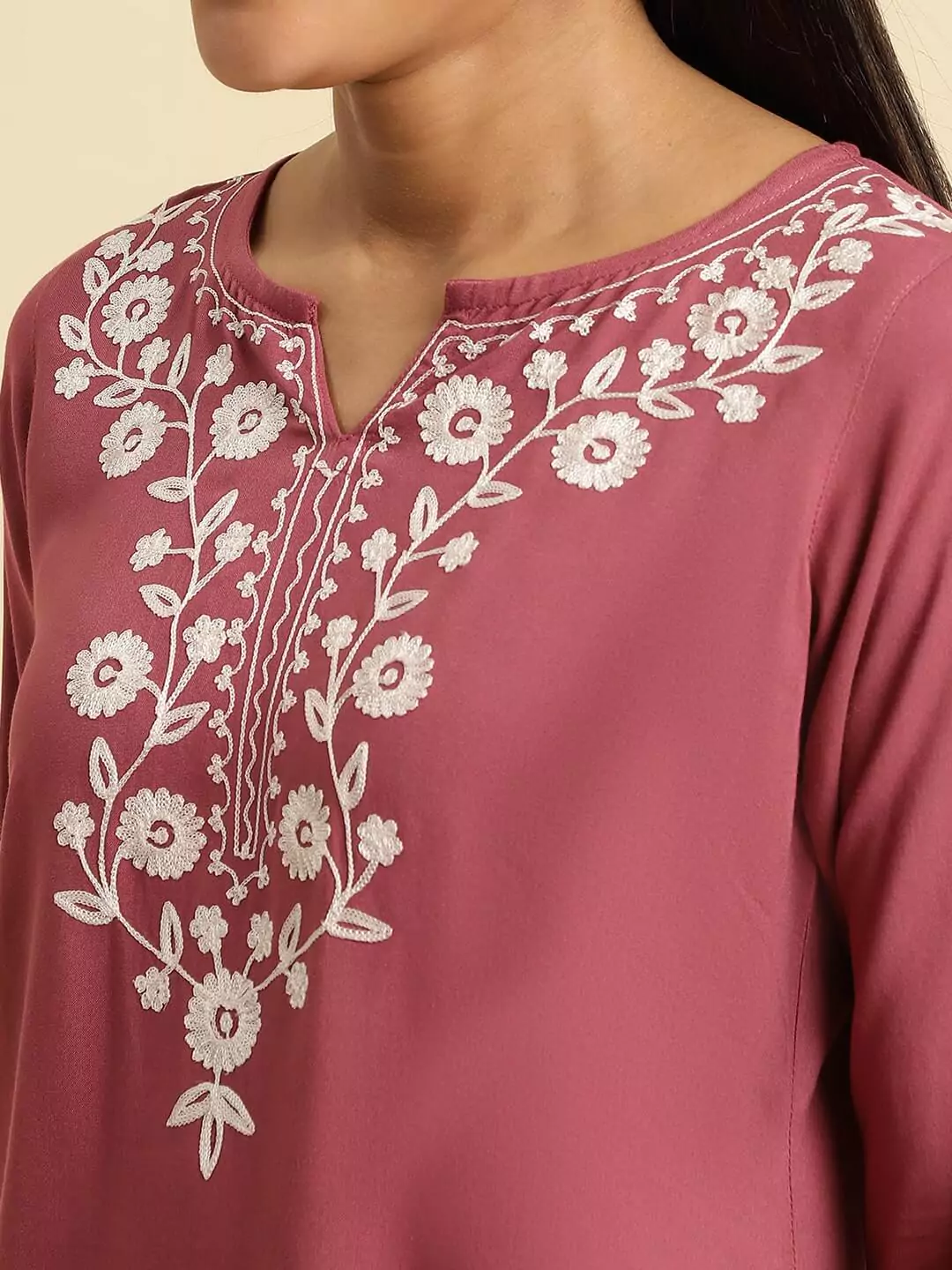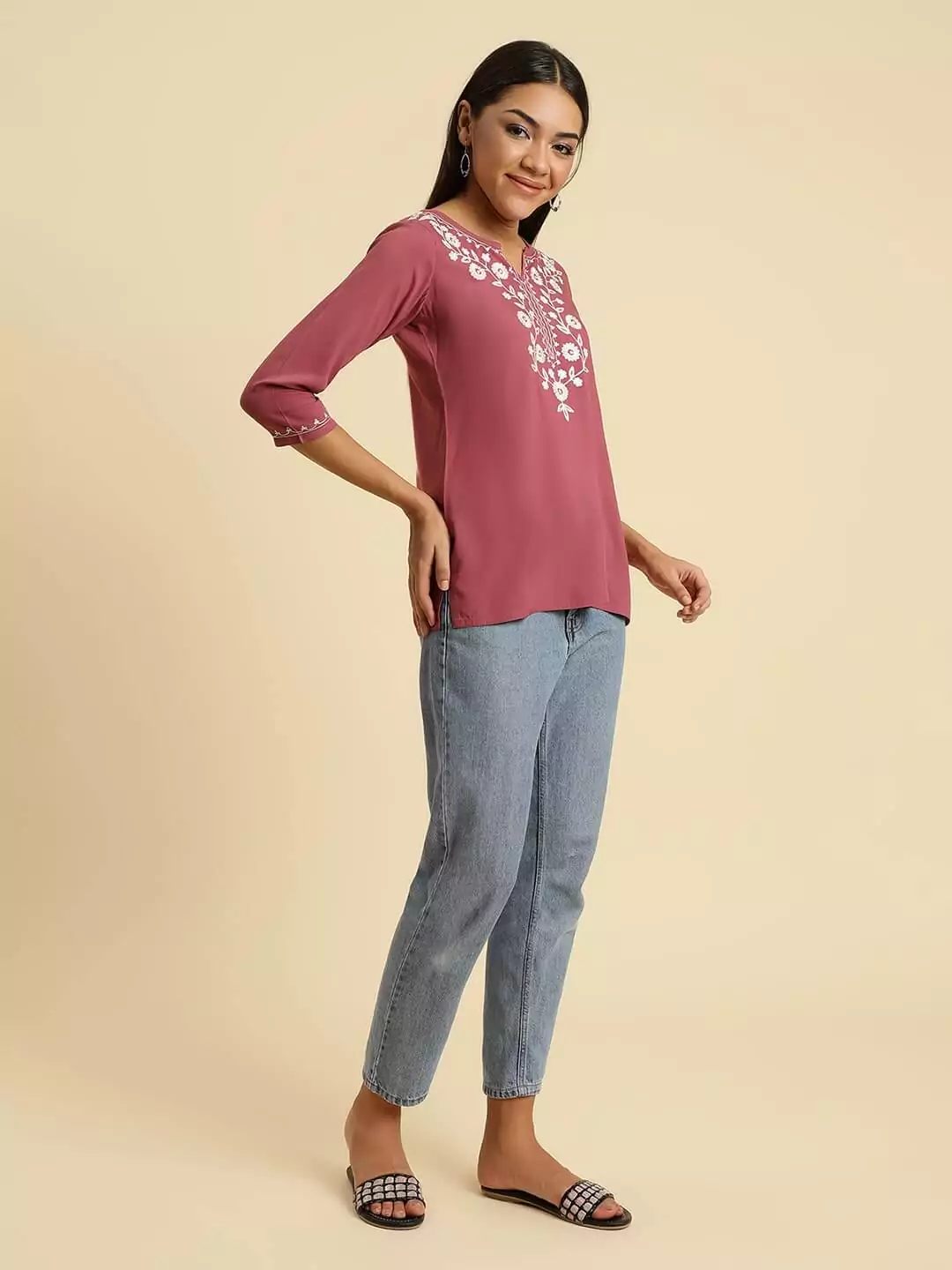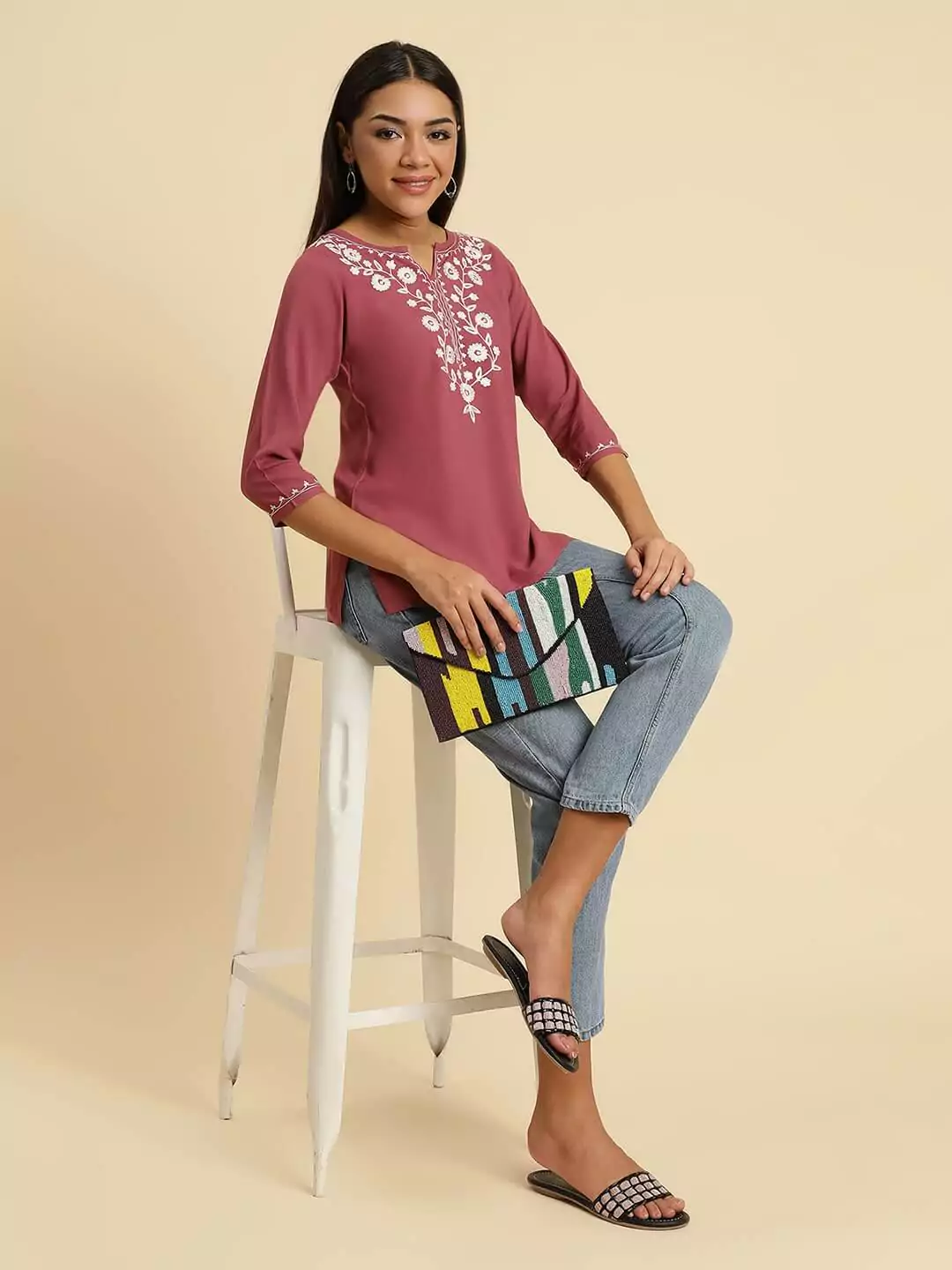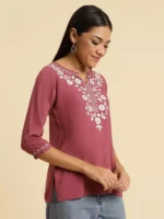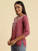 Home Short Kurtis Pink Kashmiri Silk Work Short Kurti