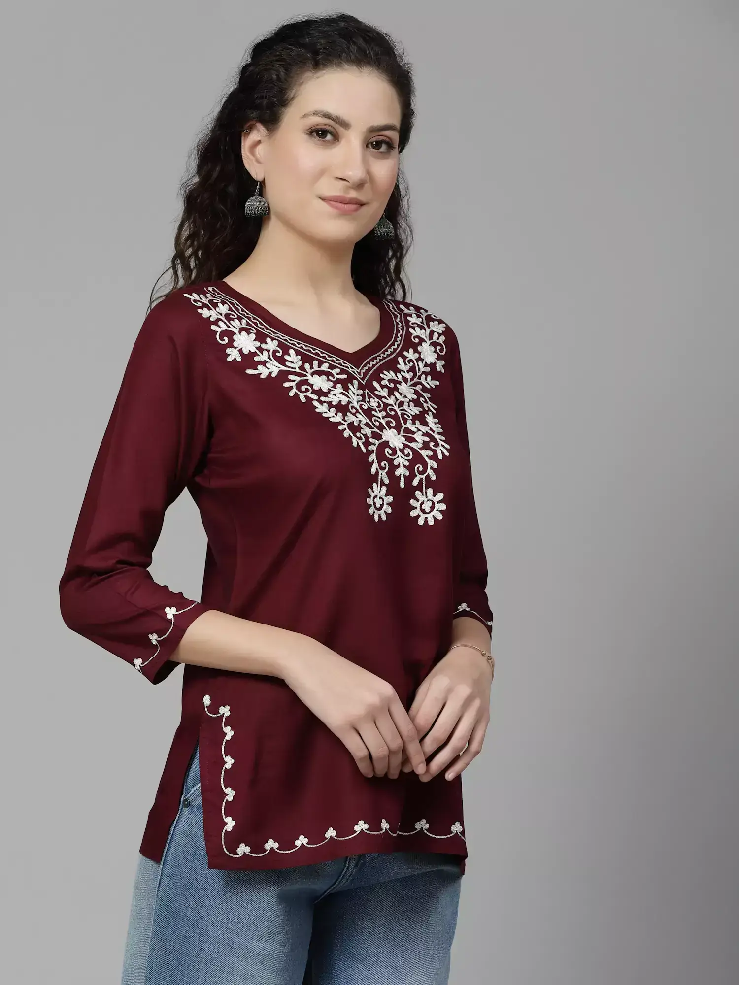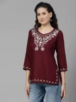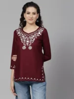 Maroon Kashmiri Silk Work Short Kurti